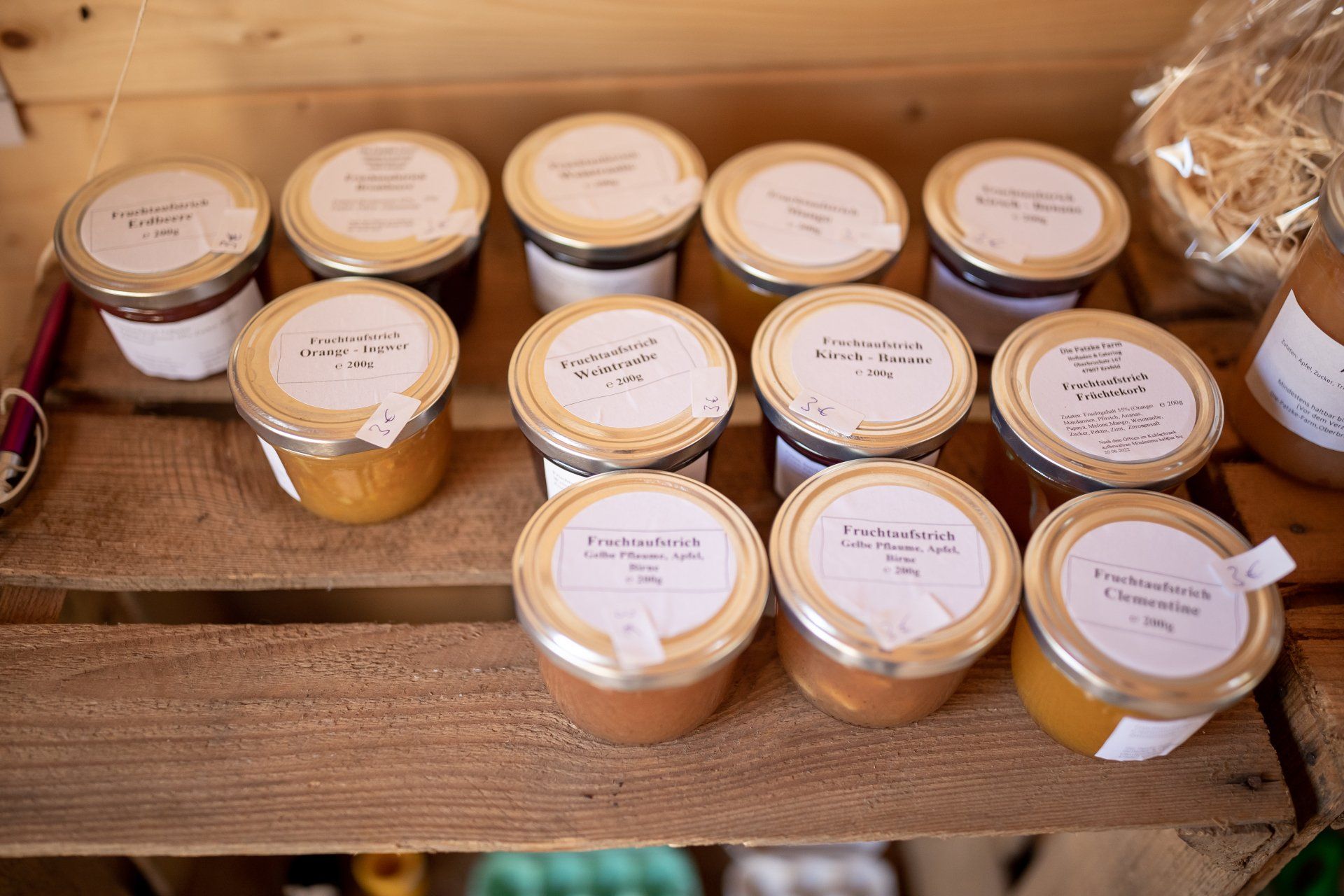 Seit August 2020 haben wir unser Sortiment etwas erweitert, so haben wir jetzt zum Beispiel: frische Kartoffeln, Äpfel, Birnen, Honig, Nudeln, aber auch Suppen, Chips, Fruchtaufstriche, Brotaufstriche wie Rüben- Birnen oder Apfelkraut.. Ein Besuch lohnt sich also immer.